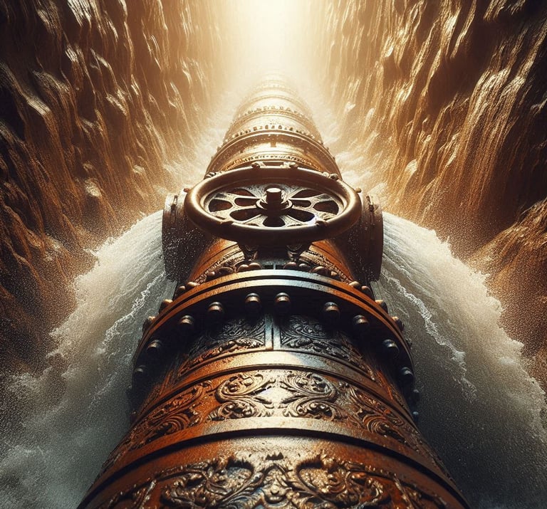 Tous les cinq maintenant s’affairaient silencieusement sur le chantier. Baylon et Delbos sur le gros tuyau, Lextreyt et Rochetto sur la vanne et Brunet resté en haut actionnait le palan. Tous étaient silencieux, penchés, concentrés, sur leur tâche, on entendait que les claquements et crissements des outils . C’est alors qu’une grosse voix grave résonna sans que a priori on put en déterminer l’origine :