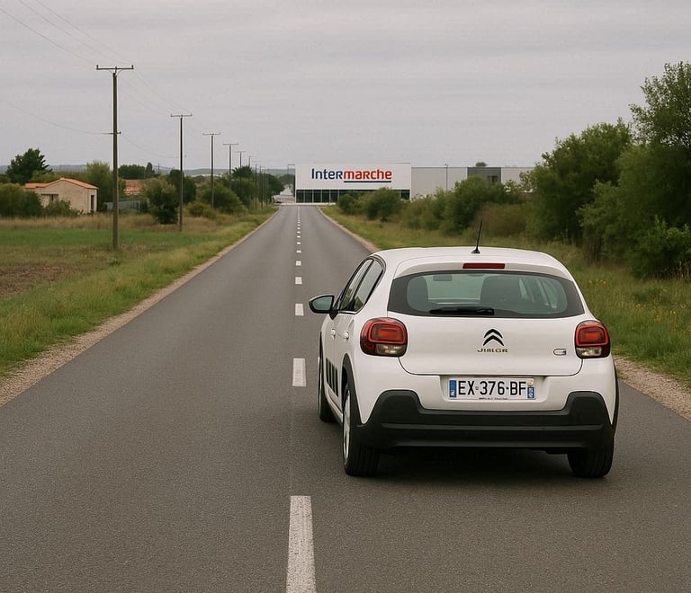 Indistinctement d’abord, j’entends le son d’un moteur. Puis le bruit d’une voiture reculant dans l’étroite allée.